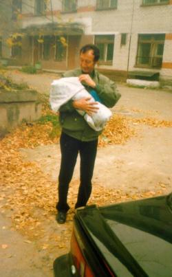 Забираем Егора из роддома. Дед с внуком.